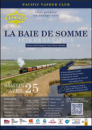Samedi 25 avril, rendez-vous en baie de Somme pour la fête de la vapeur Ouverture des réservations vers la fin février au plus tard. A bientôt !